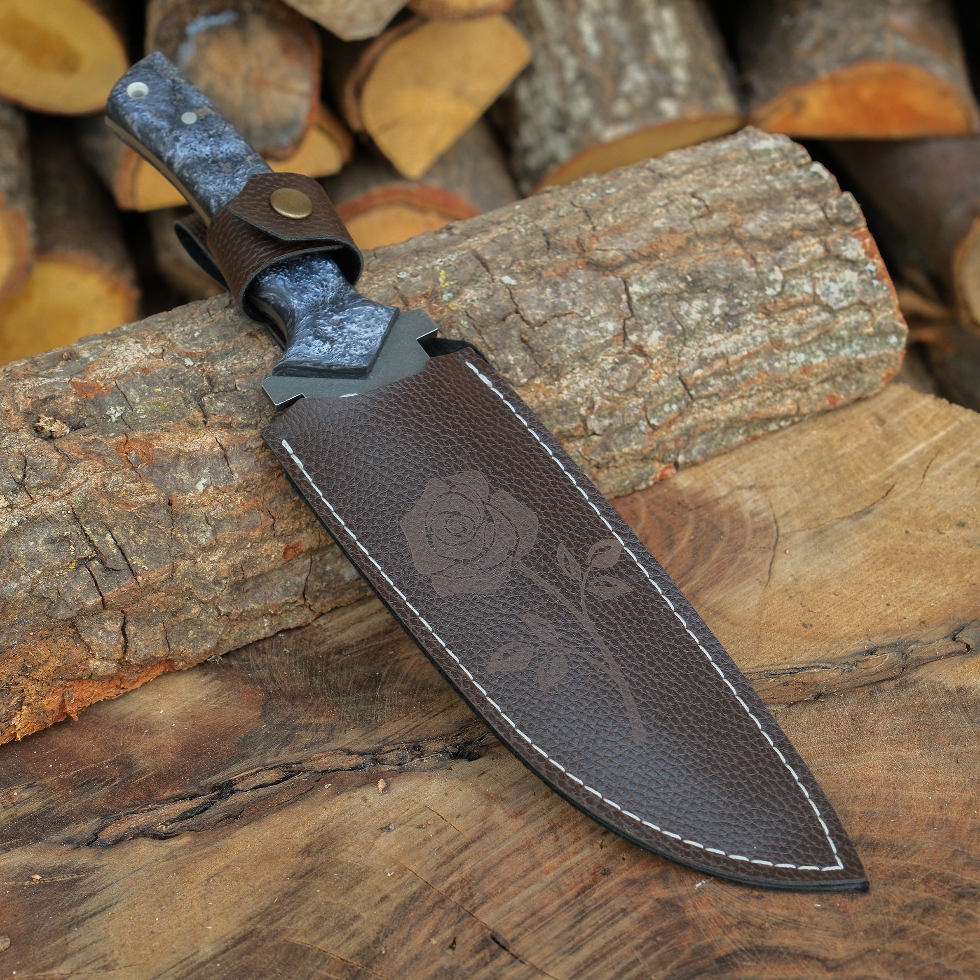 Paslanmaz 4034 Alman çeliği ve epoksi sapın mükemmel uyumuyla üretilen bu bıçak, dayanıklılık ve estetik tasarımı bir arada sunar. Keskinliği ve dengeli yapısıyla mutfakta pratik kullanım sağlar, taşıma kılıfı sayesinde güvenli şekilde saklanabilir.