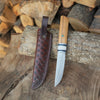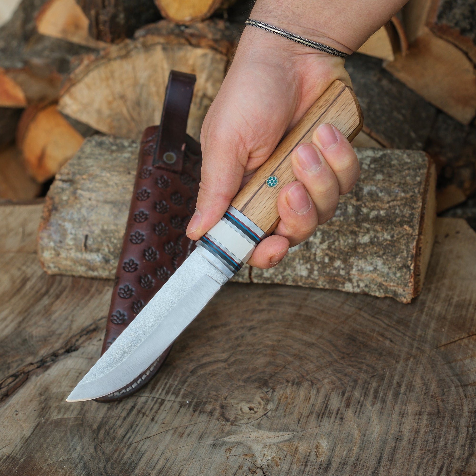 Dayanıklı N690 çelikten üretilmiş bu özel Puukko modeli, keskinliği ve uzun ömürlü yapısıyla öne çıkar. Ceviz sap, doğal dokusu ve sağlam tutuşuyla kullanım konforunu artırır. Gerçek deri taşıma kılıfı ise hem koruma hem de estetik sağlar. Kamp, doğa sporları ve avcılık gibi aktivitelerde güvenle kullanılabilir.