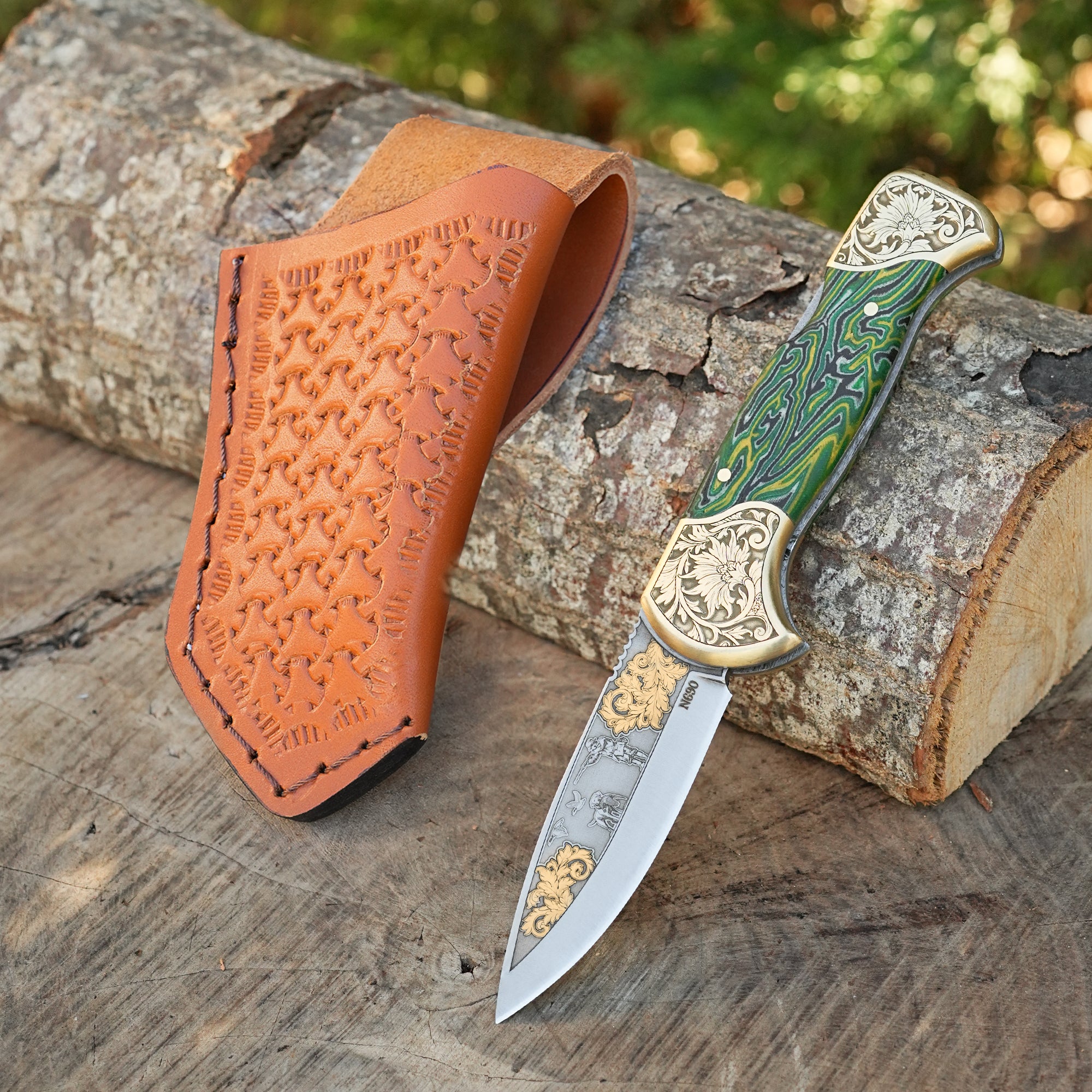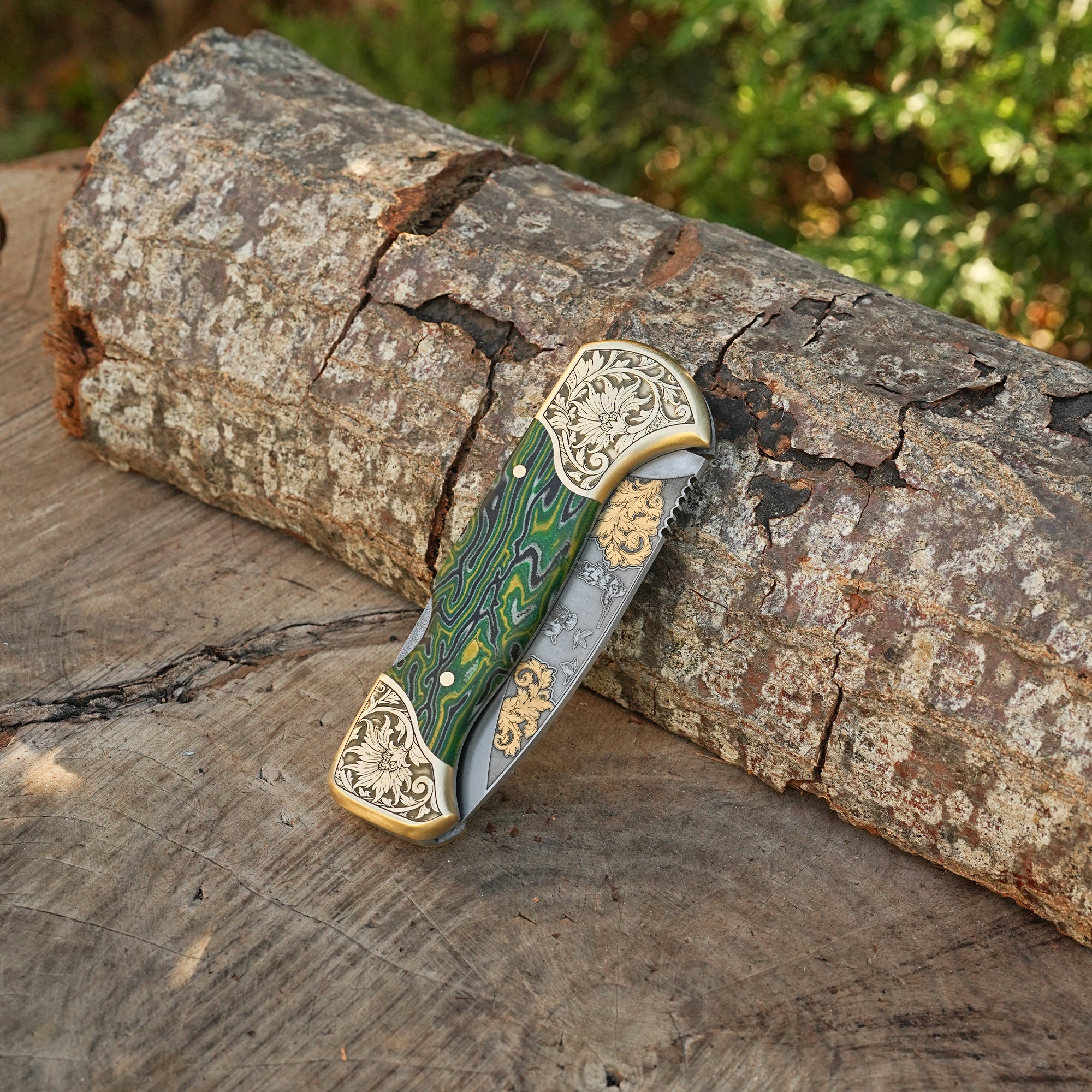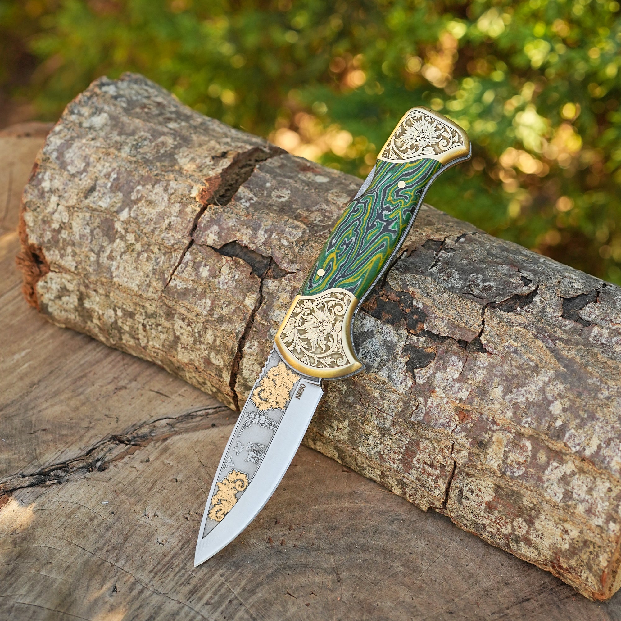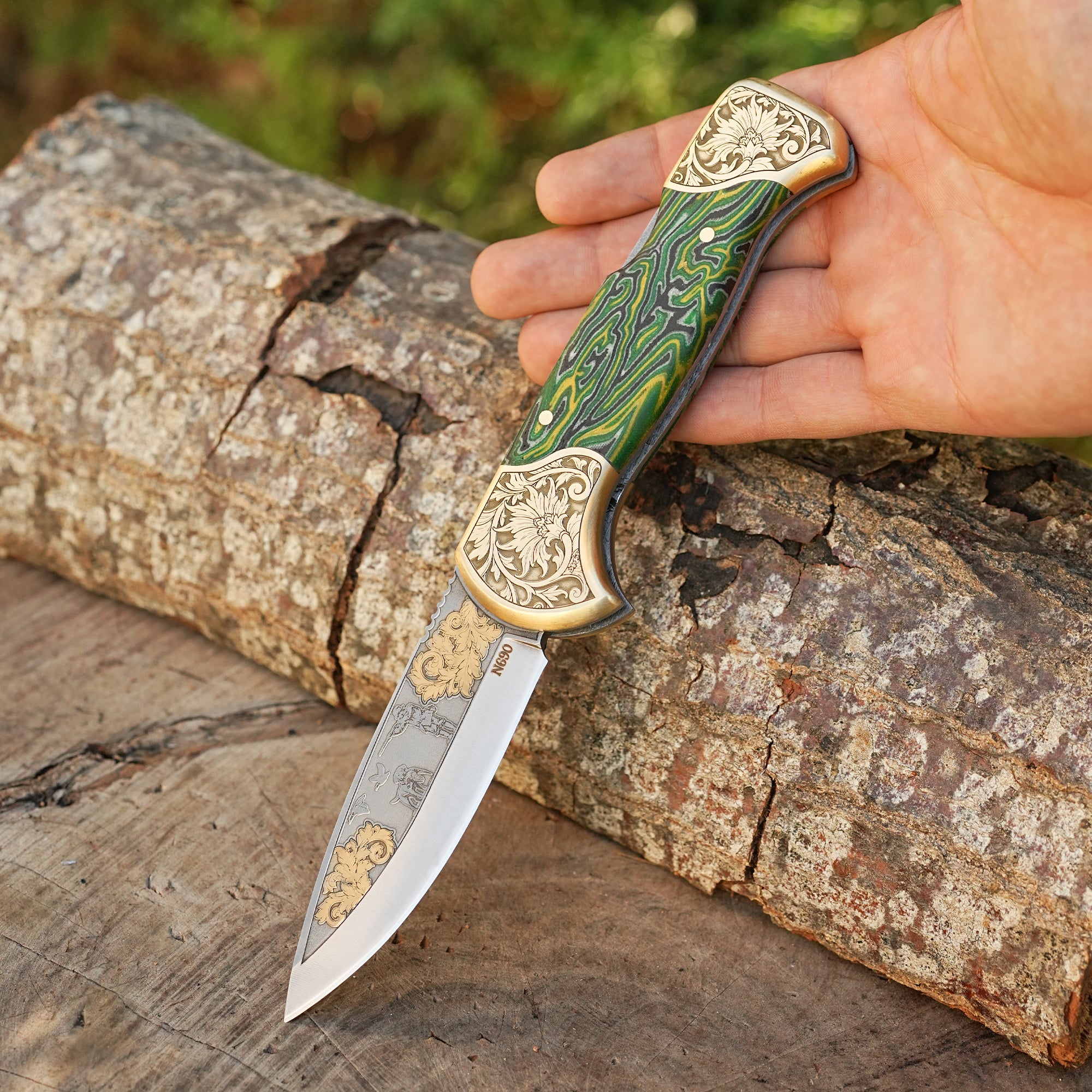 Katlanır Model- N690 Çelik -Avcı Gravür İşleme - Çift Balçak Altın Kaplama