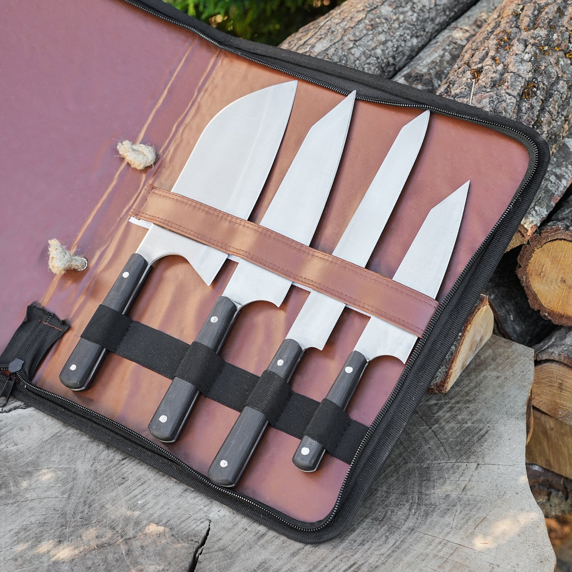 Doğal ceviz sapın sıcaklığı ile paslanmaz Alman çeliğin sağlam yapısı bu 4’lü şef bıçağı setinde buluştu. El işçiliğiyle şekillendirilen her bir bıçak, farklı mutfak ihtiyaçlarına özel olarak tasarlanmıştır. Hem fonksiyonel hem estetik bu set, mutfağınıza prestij ve güç kazandırır.