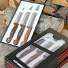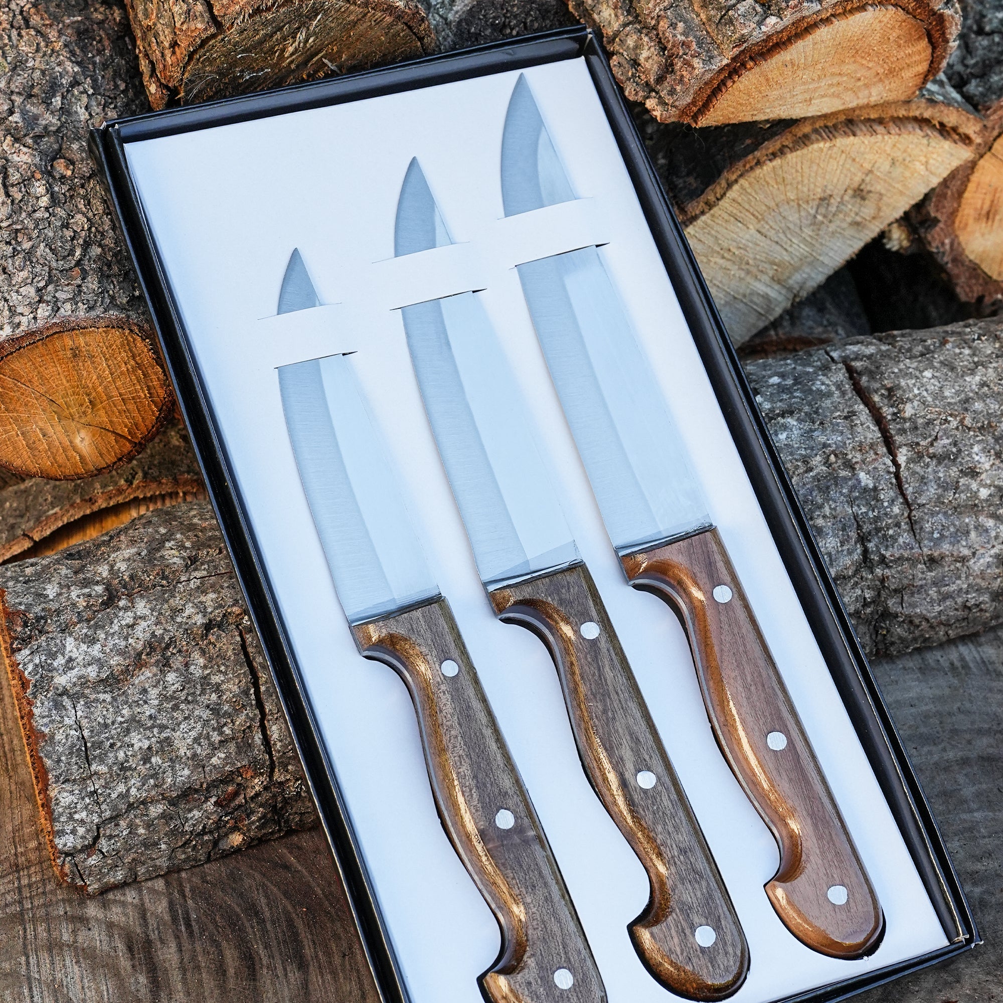 Üç parçadan oluşan bu set; doğrama, dilimleme ve hassas kesim işlemleri için özel olarak hazırlanmıştır. Her biri el işçiliğiyle şekillendirilmiş ceviz sap ve 4116 paslanmaz Alman çeliğiyle donatılmış bu bıçaklar, mutfakta hem fonksiyonel hem de estetik bir deneyim sunar.