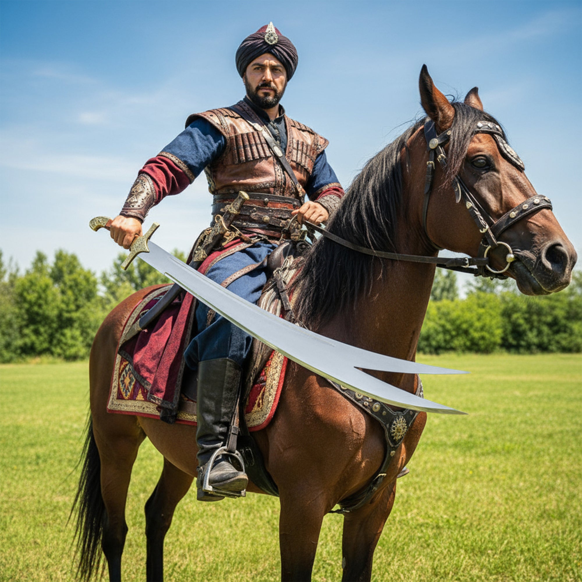 4034 paslanmaz Alman çeliğinden üretilmiş, ceviz sap ile tamamlanan bu 90 cm uzunluğundaki özel model, sağlamlığı ve estetik görünümüyle koleksiyon, dekoratif kullanım ve sahne gösterileri için idealdir. 72 cm çelik uzunluğu ve 3.5 mm kalınlığıyla hem güçlü hem dengeli bir yapıya sahiptir.