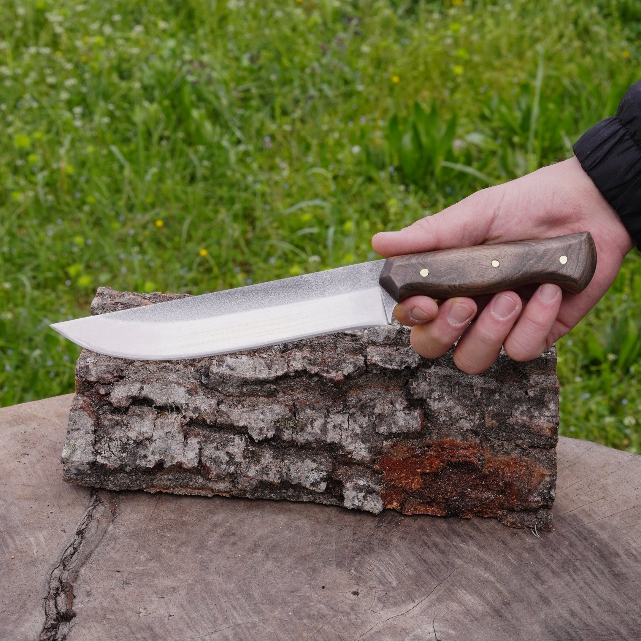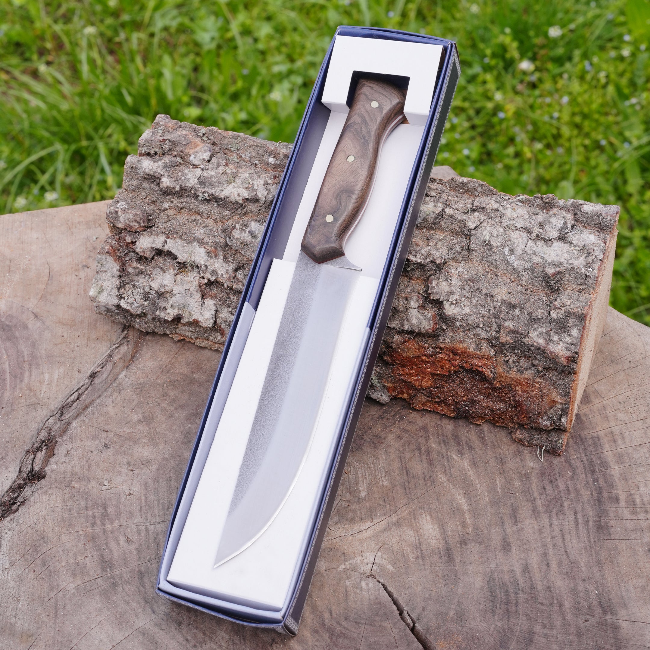Yüksek performanslı N690 çeliğinden üretilen bu özel bıçak, keskinliği ve dayanıklılığıyla ön plana çıkar. Kök ceviz sapı ile elde edilen yapısı, İşlemeli yüzeyiyle hem estetik hem de fonksiyonel bir kullanım sunar.