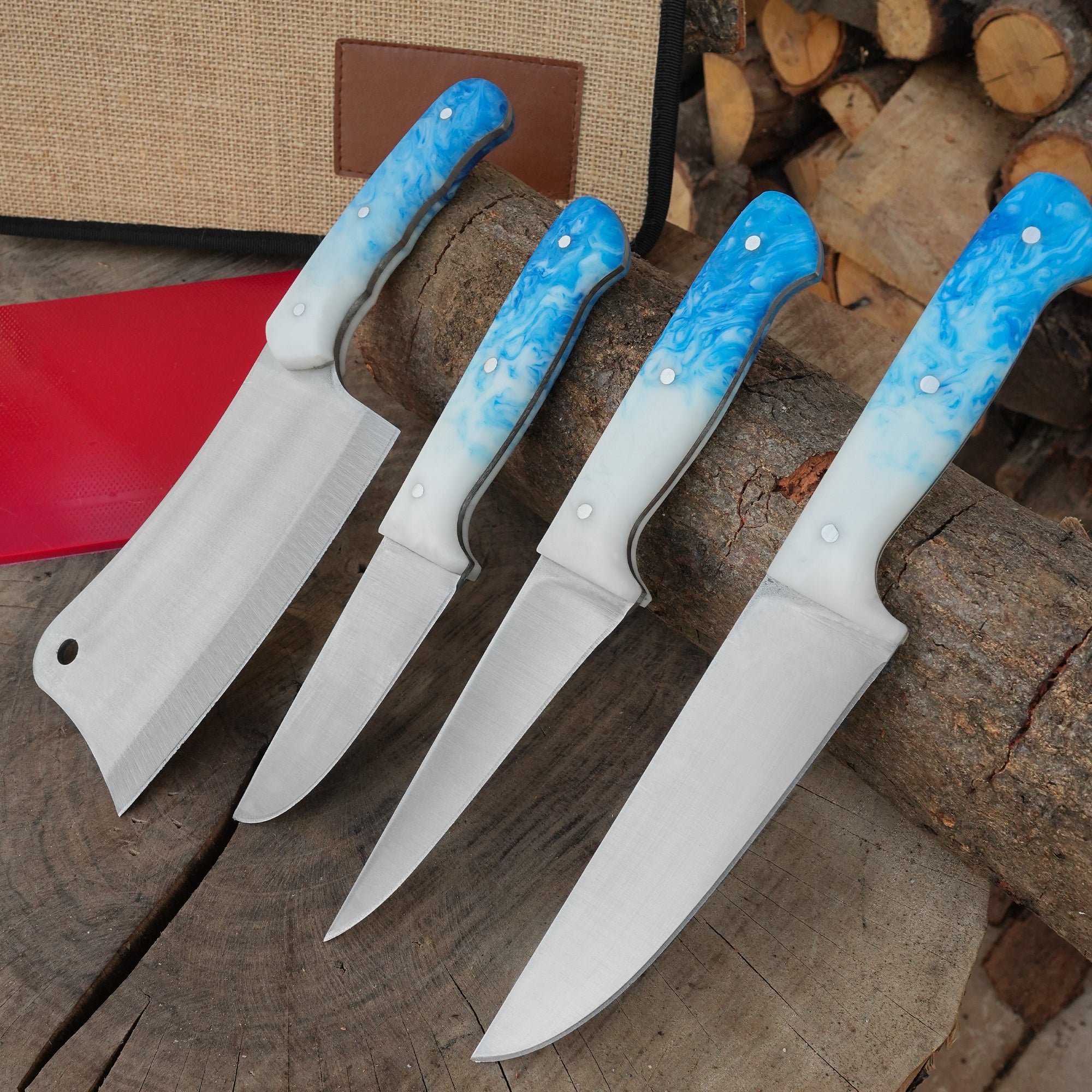 4'lü Kasap Bıçağı Seti + Kesme Tahtası - Paslanmaz Premium Kalite