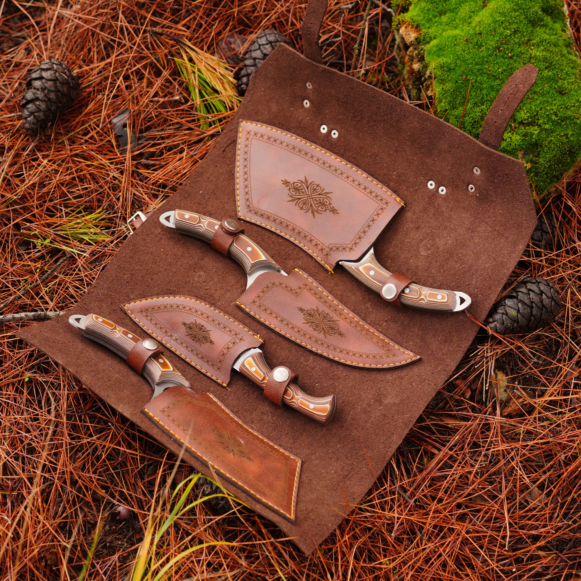 Setimiz 4 adet kamp bıçağı ve deri kılıfından oluşmaktadır.