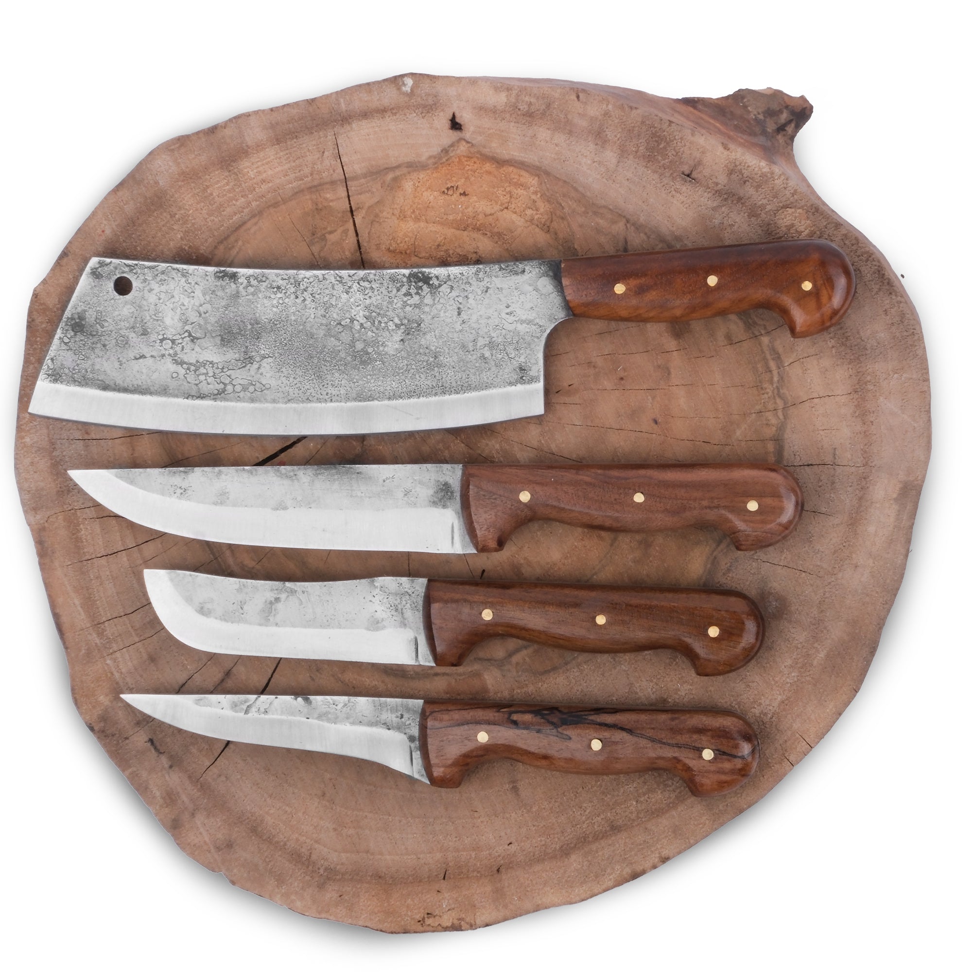 %100 el emeğiyle ustalarımız tarafından dövme makas çeliğinden üretilmiş bu özel kurban bıçağı seti, Yatağan kasabasının zanaatkâr geleneğini en iyi şekilde yansıtır. Her biri ceviz saplı, özel tasarımlı ve fonksiyonel olan bu dört parçalık set; kesme, sıyırma, yüzme ve parçalama işlemleri için idealdir.