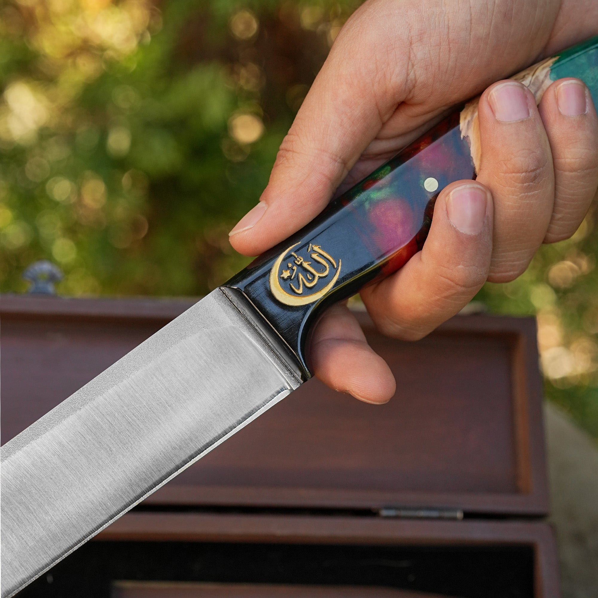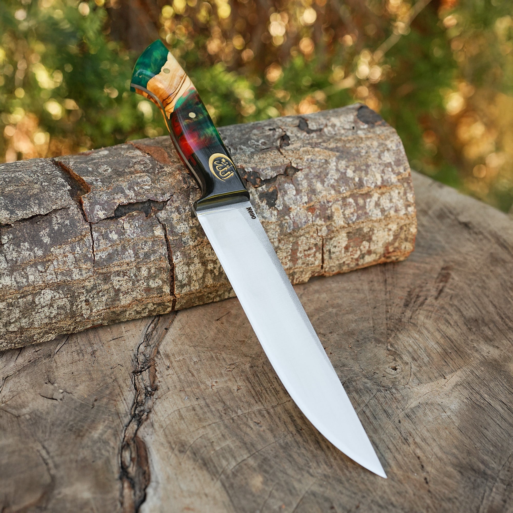 Yüksek performanslı N690 çeliğinden üretilen bu özel bıçak, keskinliği ve dayanıklılığıyla ön plana çıkar. Epoksi sapı ile elde edilen yapısı, İşlemeli yüzeyiyle hem estetik hem de fonksiyonel bir kullanım sunar.