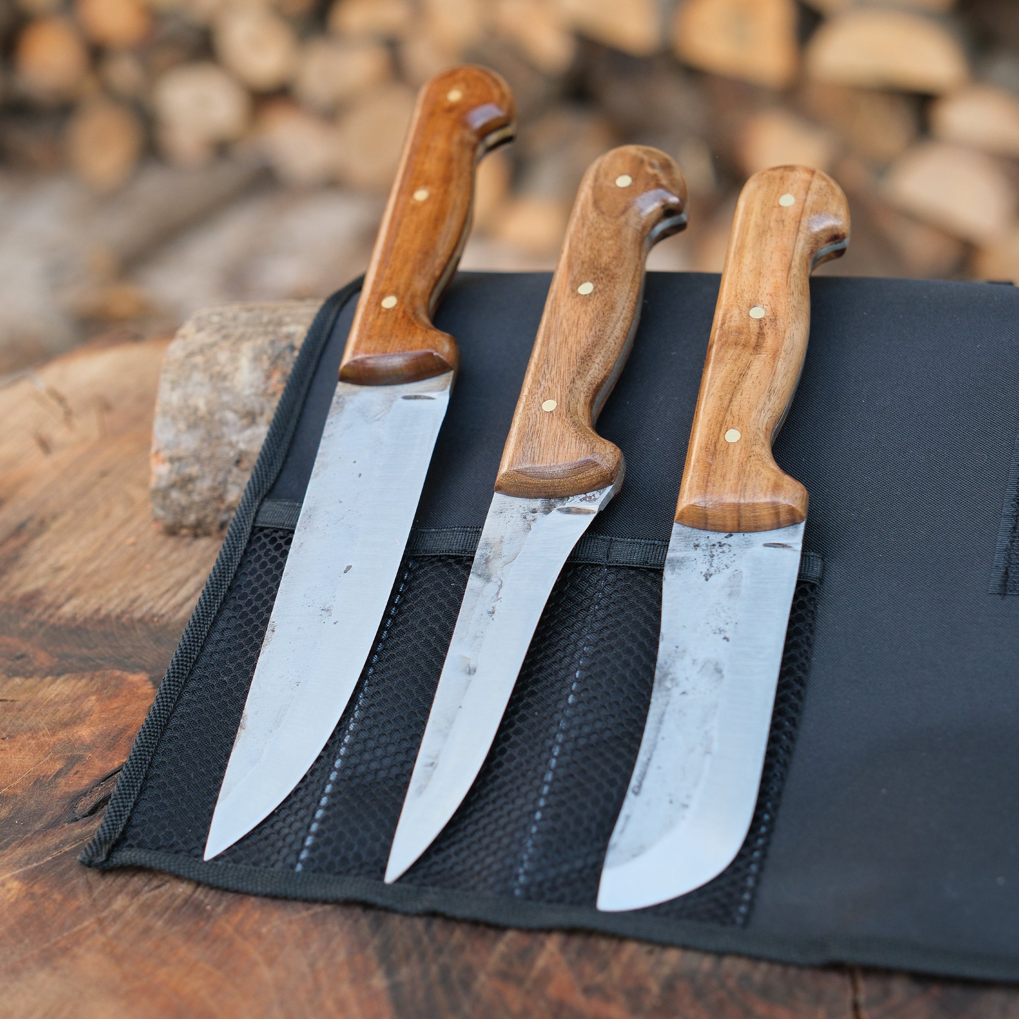 Kesme Bıçağı Seti 3'lü - Dövme Makas Çeliği - Çantalı