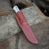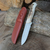 Doğal geyik boynuzu sapı ve kompakt yapısıyla bu el yapımı bıçak, koleksiyon değeri taşıyan özgün tasarımıyla hem işlevsellik hem zarafet sunar. N690 çelik ve vaketa deri kılıf ile hem estetik hem dayanıklı bir yapıdadır.